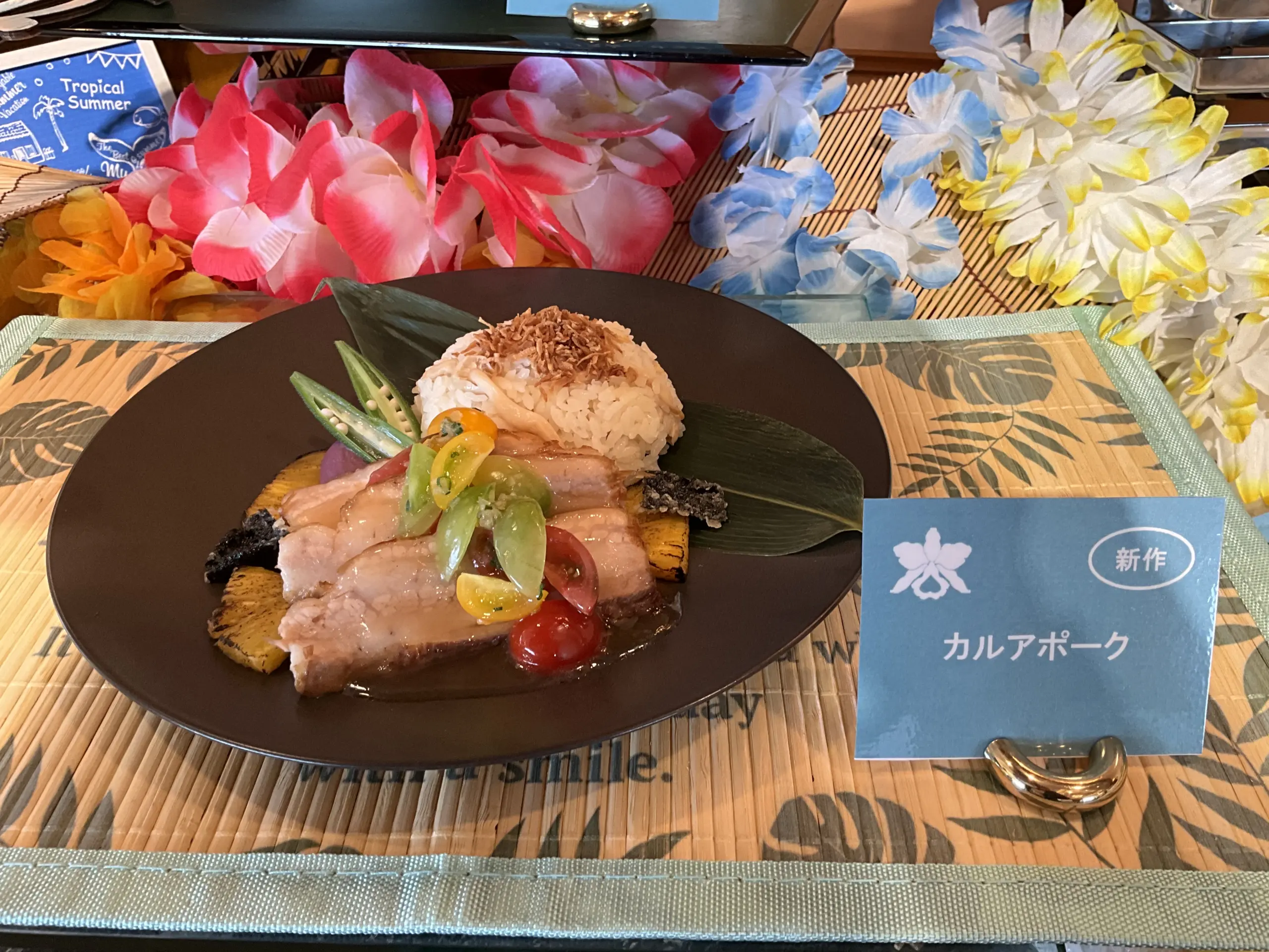 本場ハワイでも人気の「カルアポーク」は、燻製の香りが広がるポークをメインにした一皿。和風だしを使ったソースと柔らかく蒸し焼きにしたポークのうま味など、ハワイのエッセンスと和の繊細さが融合している。