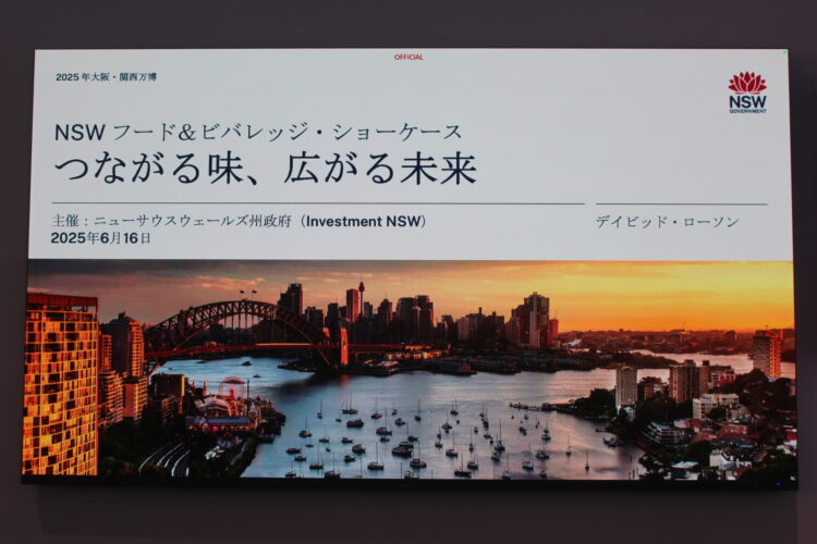 食関係のイベントをよく開催するオーストラリアパビリオンで、今度は同国で最も人口の多い州であり、プレミアムな農産物・食品の主要輸出地のニューサウスウェールズ州(NSW)が主催する同州産のビーフやラム、シーフード、ワイン、ハチミツ、ハーブなどの試食会「NSWフード&ビバレッジ・ショーケース」が開催されたので、参加してきた。