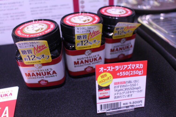 オーストラリアマヌカ+30、+50、そして+550と3種類揃えられていたマヌカハニーを試食したが、+30でも相当濃厚で上品な甘さだった。最高級のマヌカハニーはトロトロでねっとり甘く贅沢感が口からこぼれ落ちそうなほど。こんなものを普段から食べていたら、普通のハチミツは食べられなくなりそうだ。
