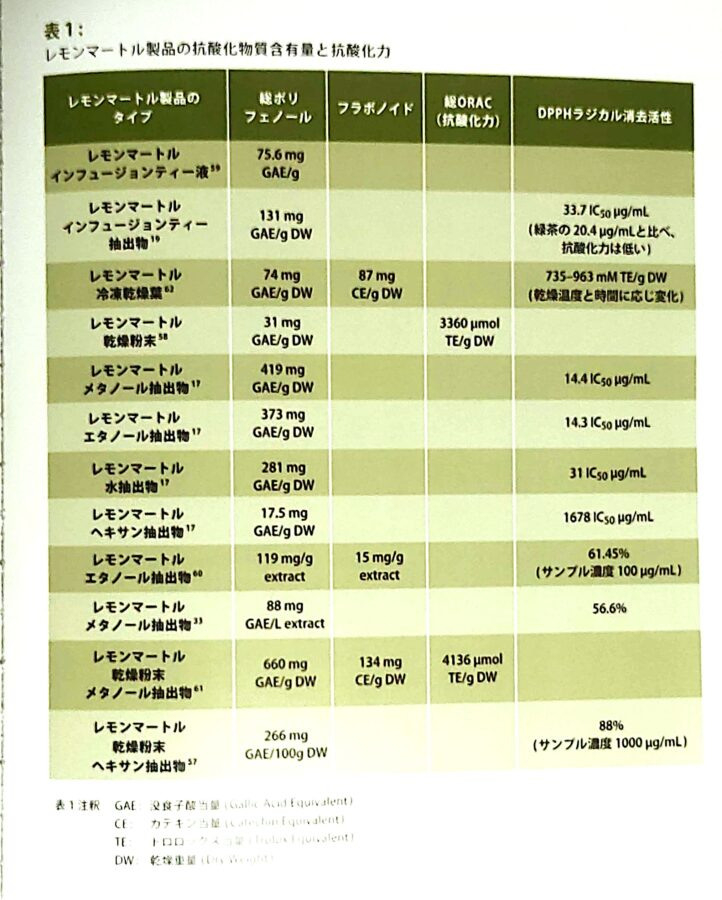 レモンマートルの葉にはシトラールが豊富に含まれていて、強いレモンの香りがする。ただ味に関してはほとんど無味に近い。ほかにもポリフェノールやフラボノイドなど体に良い成分が多く含まれているのが特徴。