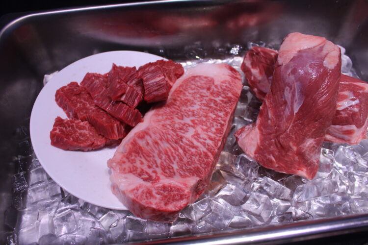 複数のWagyuミートとアンガス牛、そしてラム肉などが試食として提供されていた。