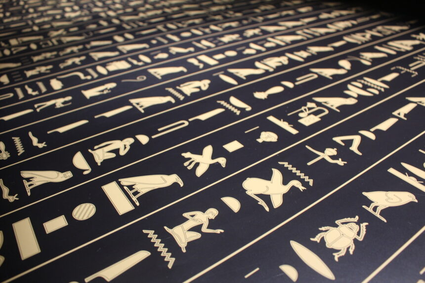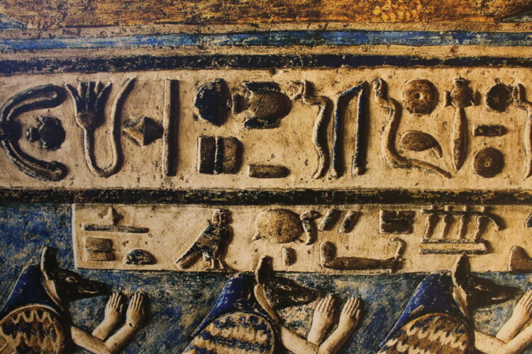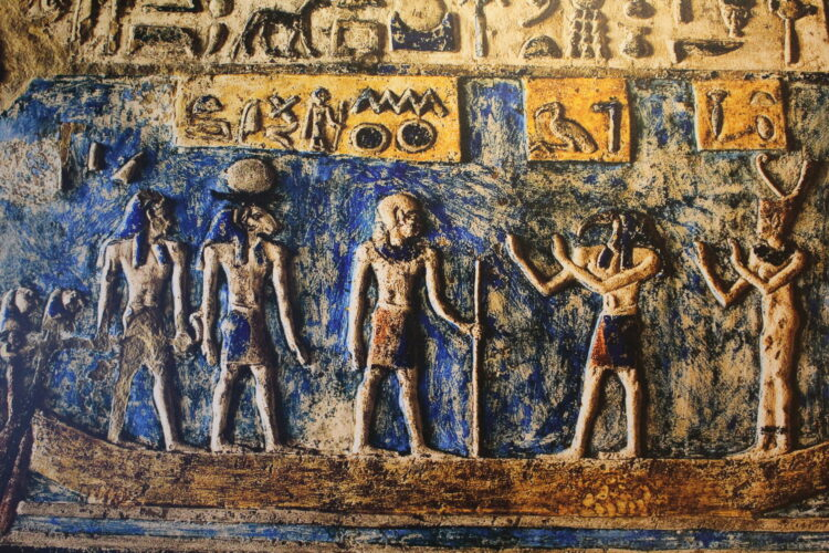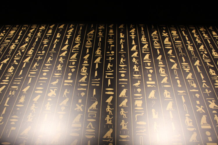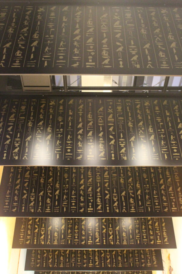 正面のドアが開くと象形文字らしきものが描かれた大きなテーブルが室内中央に置かれていて、それを囲む様に4面の壁が全てスクリーンとなってCG映像が展開される。ここでは古代エジプトの歴史や振り返り、エジプトが豊かだった時代などが学べる。