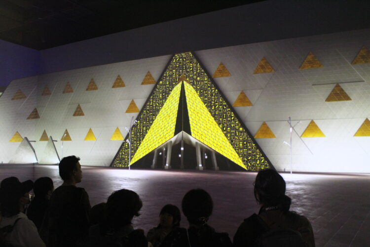 次の部屋へ移動すると、同じように壁4面を使ってCG映像をみるが、ここでは現在から未来のエジプト社会を見せてくれる。