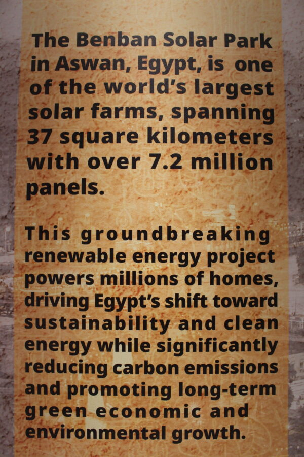映像が終わると主要コンテンツは終わり、多くの人がスタンプ目掛けて室外へ移動していったが、その途中の通路には日本がエジプトに協力しているプロジェクトの紹介や、エジプト自身が取り組むプロジェクト、そしてもうすぐオープンする国内最高の高さを誇る商業ビルの紹介などが掲示されているので、これらも飛ばさずにチェックしておくべき情報だ。