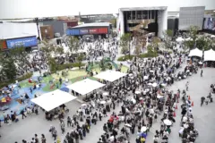 パビリオンの紹介記事の中で、フィリピンパビリオンは解体時の効率性を優先して、建設時に組んだ足場をバラさずにそのまま残し、パビリオン全体をラタンパネルで装飾することでその足場をうまく隠している、と紹介したが、その一部がみられるのがこの場所。各パビリオン、アイデアを凝らしているのだ。