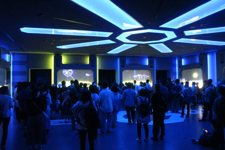 館内に入ると、順番に整列し、壁に設置されたモニターの映像をみて、これから体験する宇宙への旅に関する概略を理解する。