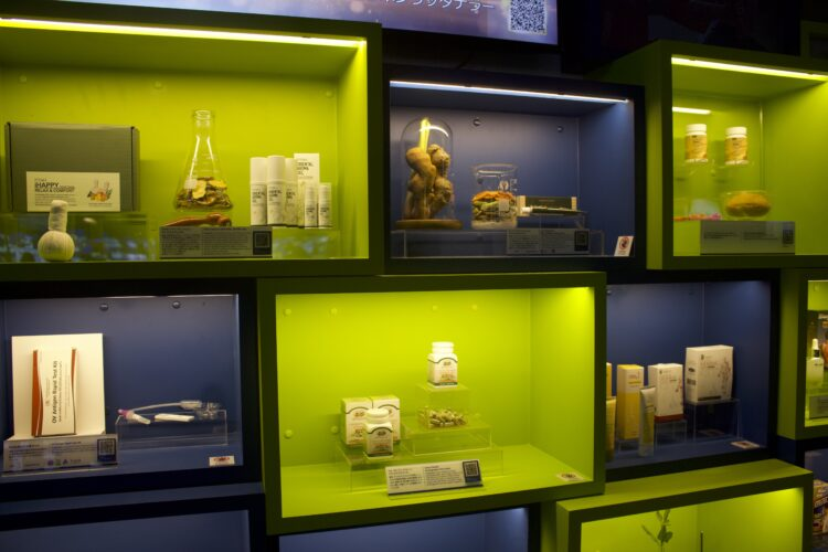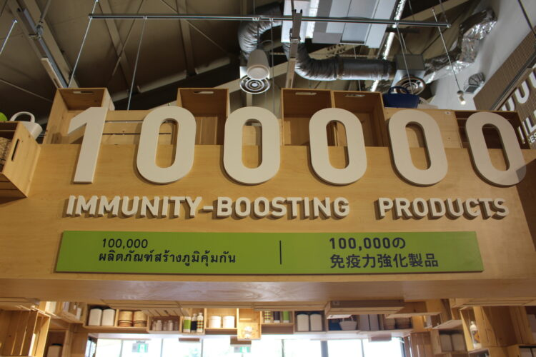 パビリオン最後の場所はギフトショップで、そこには「100000の免疫力強化製品」のサインがあり、サプリメントやティー、オーガニック食品など様々な健康に良さそうなモノが販売されていた。