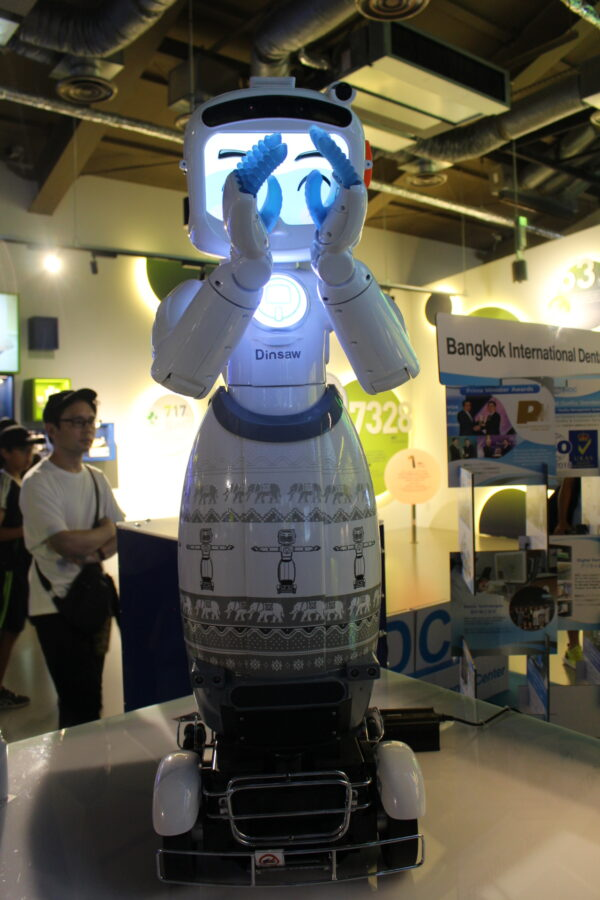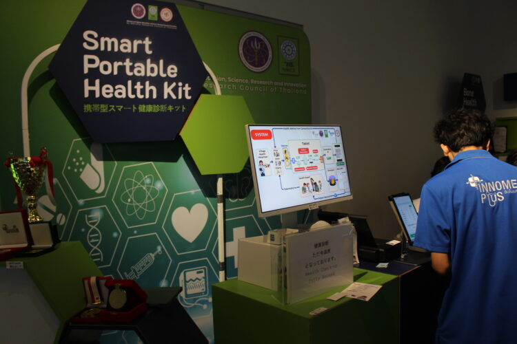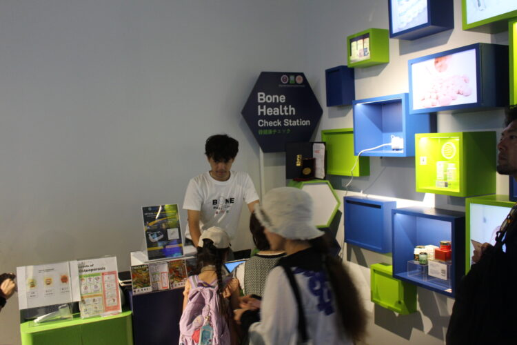 また、病院の外来患者部門の業務を請け負うロボット「ディンソー4」が展示されていたり、骨密度を計る機器や心拍数などを計測する機器を使った体験ができるスペースもある。
