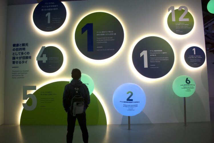 タイパビリオンは、10から1000000までの数字を使って、展示内容を紹介する構成になっていて、薬品や生薬、ハーブ、食材や食事そのもの、メディテーション、ヒーリング、そして最新の医療技術からメディカルツーリズムまで、医療や健康に関連する内容で統一された展示内容だった。