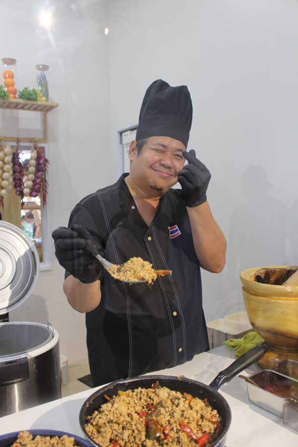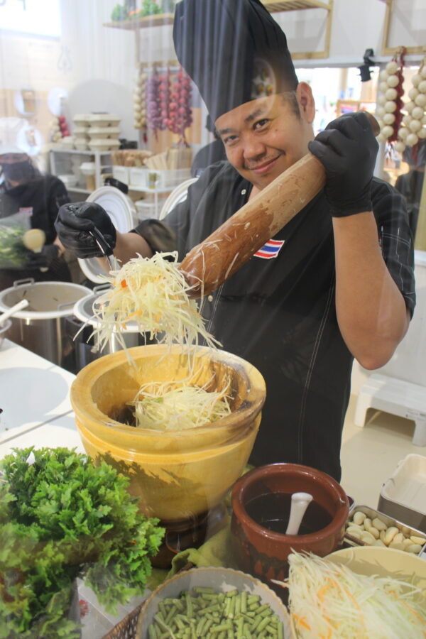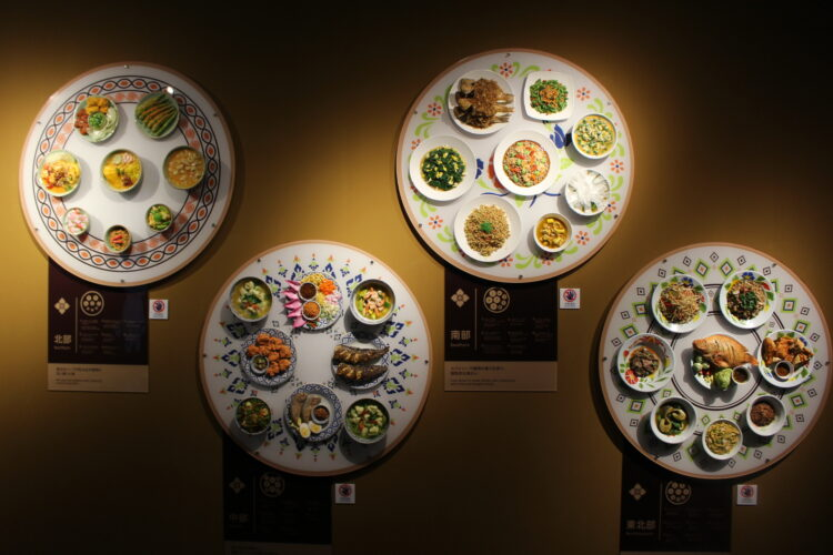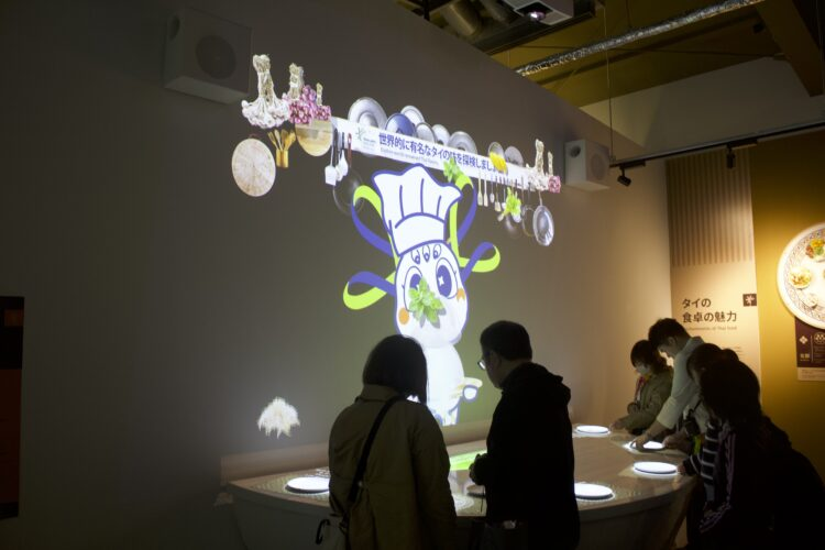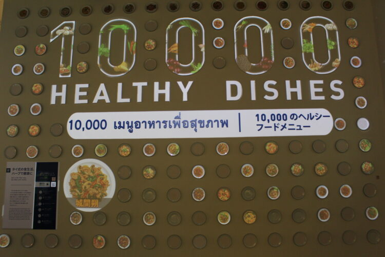 マッサージの前を通り過ぎると、次は食についてのエリア。「10000の健康に良い料理」というサインがあり、その周りにはタイの伝統的な食材やハーブなどを使ったタイ料理がCGやサンプル、パネルなどで紹介されている。