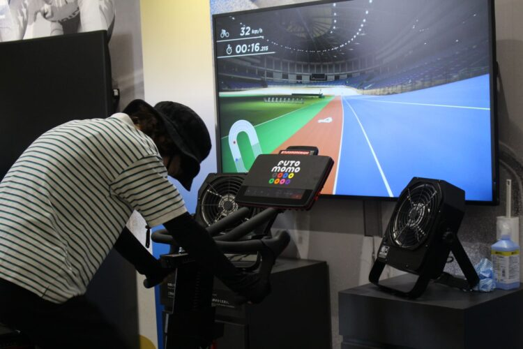 ふとももバルーンに向かって左側にある建物内では、ジムにある自転車のトレーニングマシーンを改良したようなレーシング仕様の自転車に乗り、プロ選手とレースを体験できる「Challenge! ふとももライド」というアクティビティがある。建物の外まで参戦を希望する男女が列をなしていた。