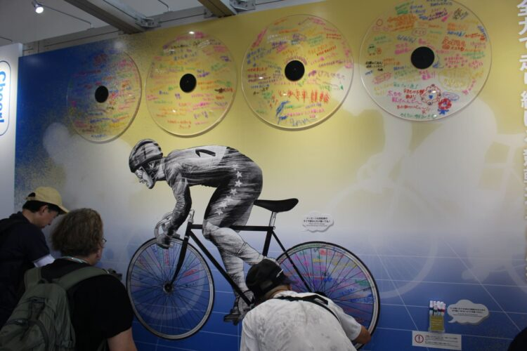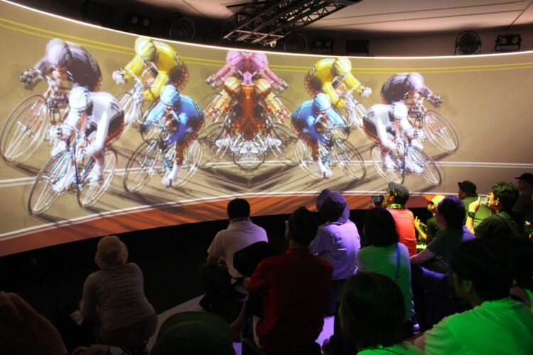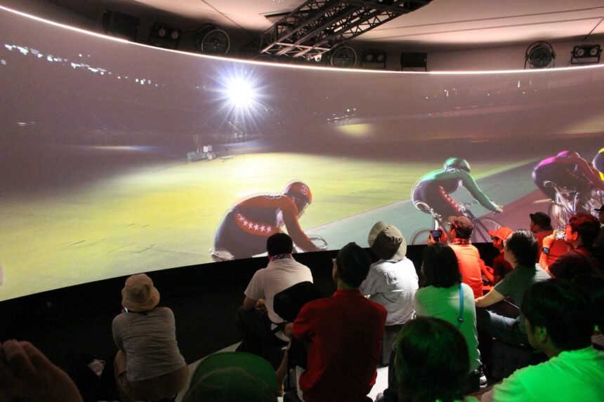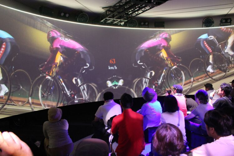 日本発祥のスポーツである競輪をもっと知ってもらうために、競輪選手の疾走感を体感できるライドコーナーや大型の半円型イマ―シブシアターなど、映像とリアル体験を通して競輪の世界を堪能できるブースが展開されている。