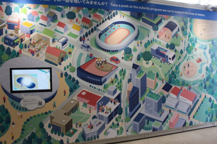その横にある「Support! ふとももソーシャルアクション」では、競輪を運営している公益財団法人JKAが協賛や支援している活動の紹介をアナログのボードとデジタルの技術を組み合わせて行ったりして、来場者を飽きさせない工夫が随所に見られた。