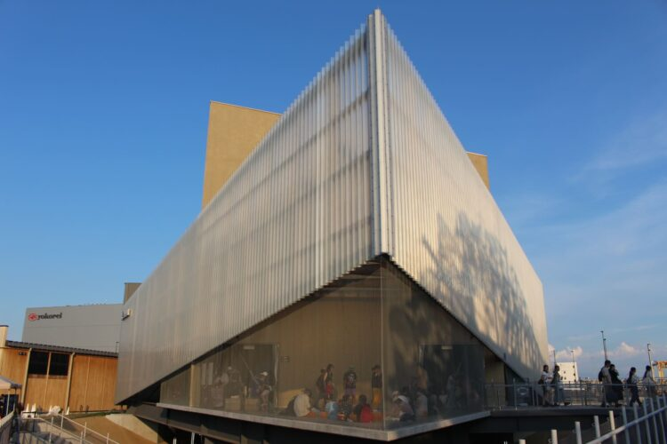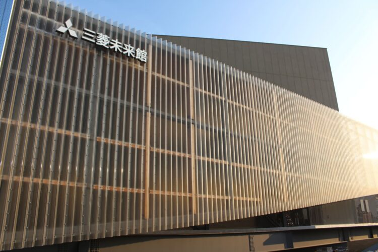 東ゲートを入ってすぐの位置にある三菱未来館。三角形の尖った建物の中では太古の過去から未来の世界が展開していた。