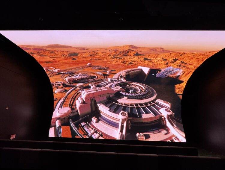 地球を飛び出して火星に向かうところから次の映像になり、来館者は一階からエスカレーターで2階へ移動し、心地よいイスに座って2つ目の映像を鑑賞。