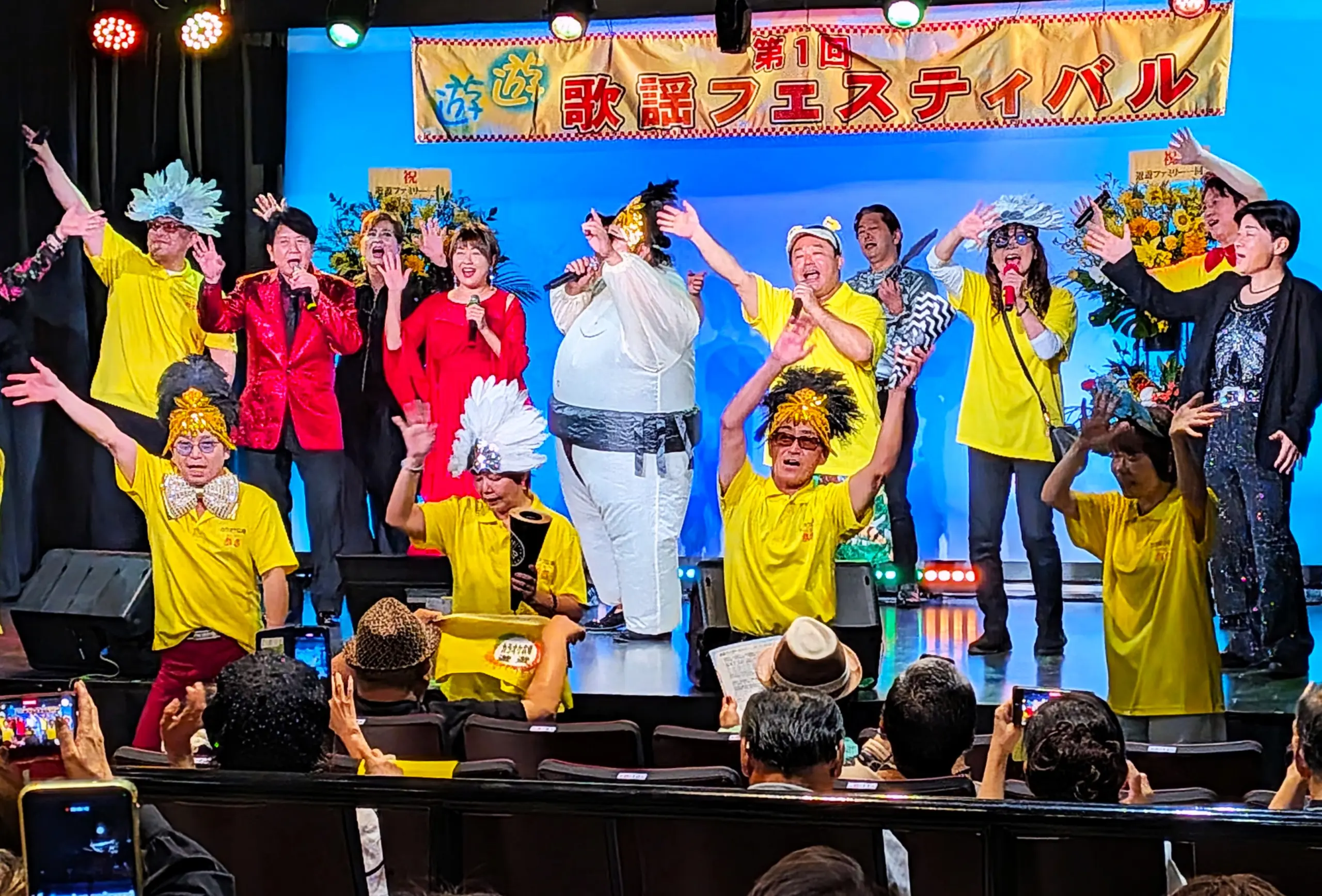「第1回歌謡フェスティバル」(「カラオケ広場 遊遊」主催)が9月27日、大阪市浪速区の新世界「ZAZA HOUSE」であり、81人のカラオケ愛好者が、心行くまで昭和歌謡を熱唱。浅田あつこさん(徳間ジャパンコミュニケーションズ)ら関西を拠点に活動しているゲスト歌手も出演し、ステージと客席が一体となった歌謡ショーが繰り広げられた。