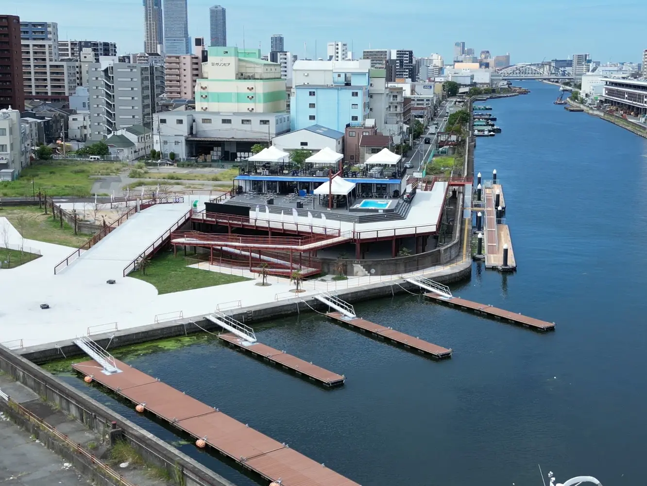周辺にはDJイベントや花火大会といった夜のエンターテインメントをはじめ、水辺市場の海鮮BBQやシーフードレストラン、愛犬と一緒に楽しめる施設も充実。大阪らしい水辺の遊びを存分に満喫できる。