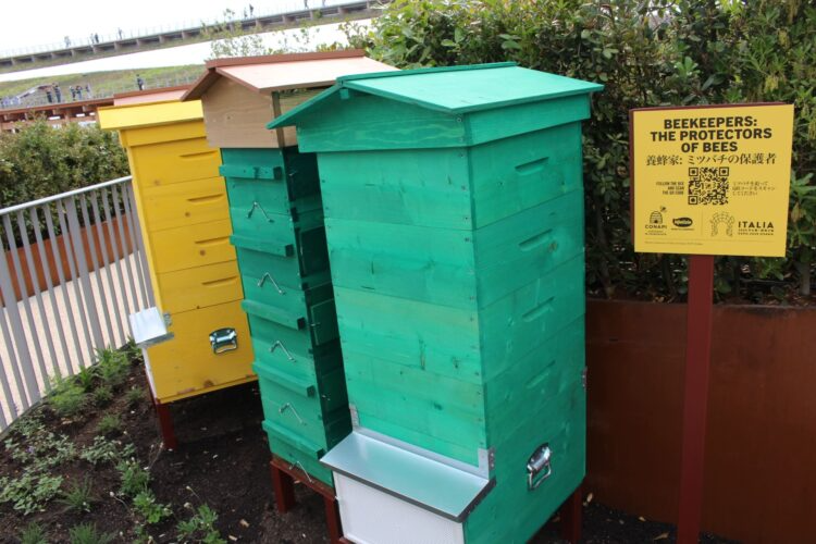また、大人気のイタリアパビリオンでも屋上ガーデンの緑の中に、色とりどりのミツバチの巣箱を展示している。他にも多数のパビリオンでミツバチに触れているイベントやセミナーも開催されていた。