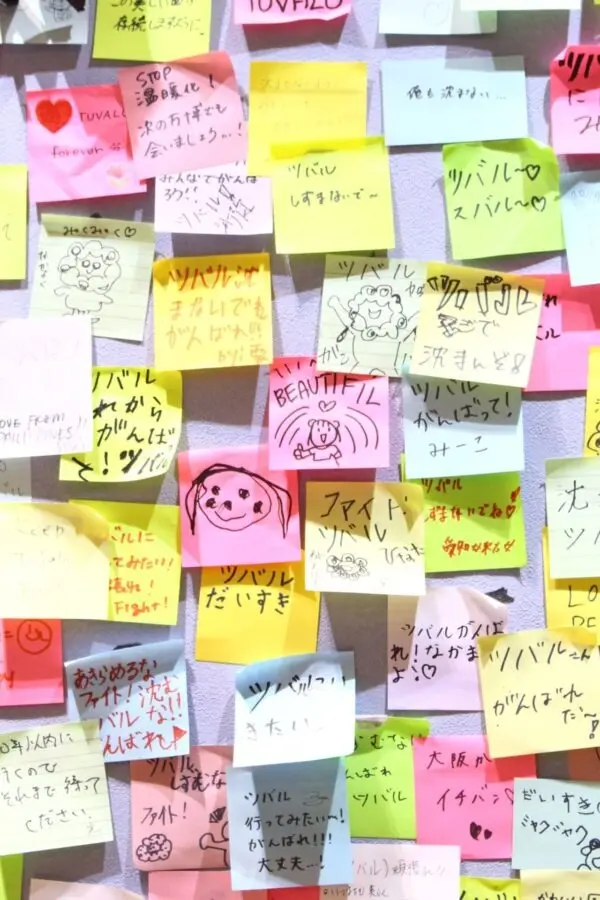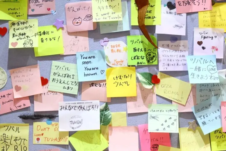 そんなツバルパビリオンには多数の応援する声がポストイットに書かれて貼られている。