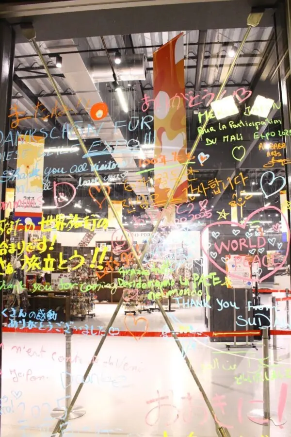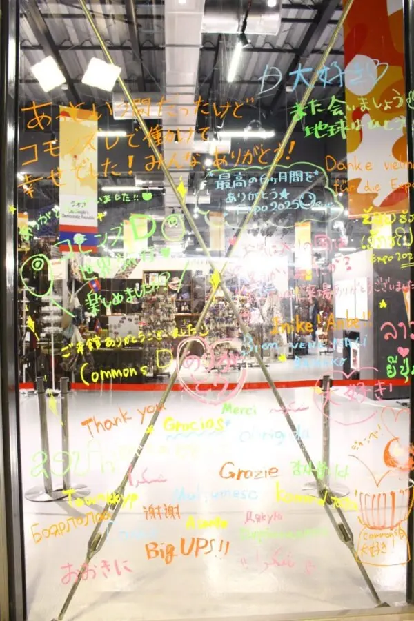 万博が終わってしまうということで、各国のスタッフやコモンズ館Dで働いていた日本人スタッフが思いを言葉にして書き込んでいたのだ。