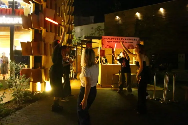 午後9時過ぎにドローンの編隊飛行による催しが終わると一斉に来場者が家路に着きだす。閉幕1日前の10月12日もそうだった。