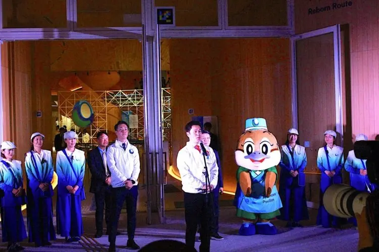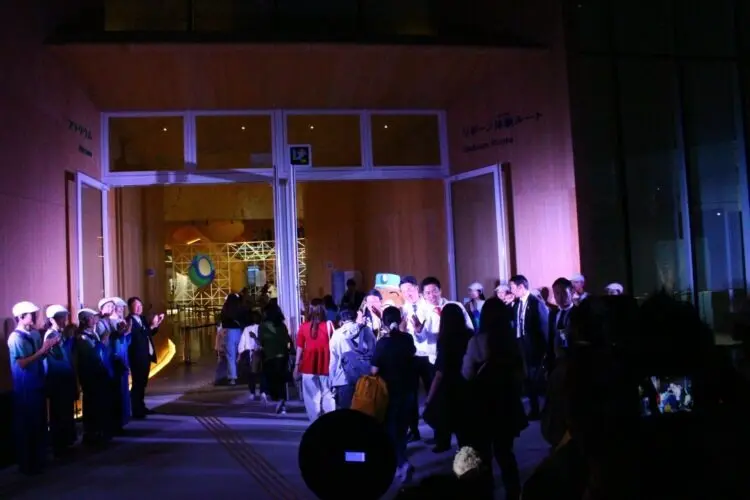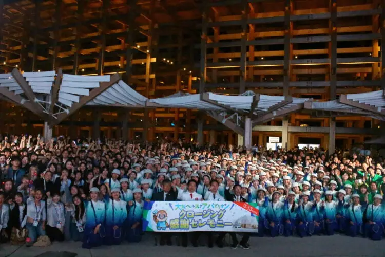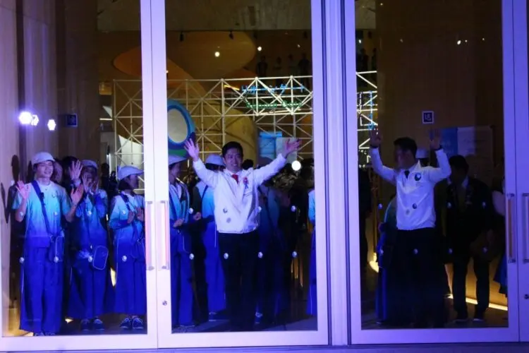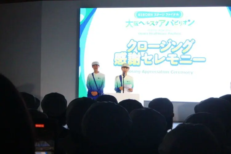 午後9時半頃からリボーンステージで開催された閉館感謝セレモニーでは、毎日来館者を誘導、迎えしてきたアテンダントや運営スタッフ約500人が勢揃いして、184日間無事に走り切ることができたことを讃え、先ほどの3人に加え、アテンダント代表の2人が万博での体験やそこで学んだこと、人との繋がり、未来への希望などを語り、聞いているアテンダントやスタッフからはすすり泣く声が聞こえたり、涙を流す顔が見られ、この万博がどんなものだったかを現していた。