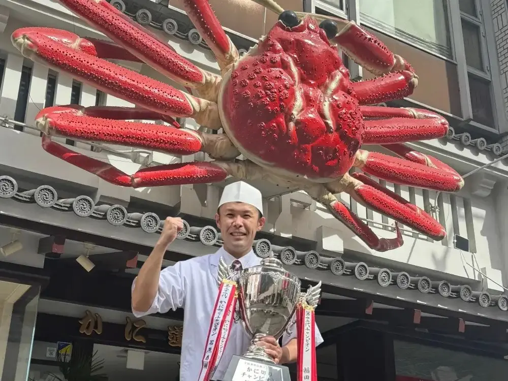 かに道楽(本社・大阪市)は10月7日に開催した「第31回かに切り大会」で、第31代チャンピオンに道頓堀東店の石原泰輔主任(37)が輝いた。全国約500人の料理人の頂点に立ち、「早くて・きれい」な包丁さばきで会場を沸かせた。