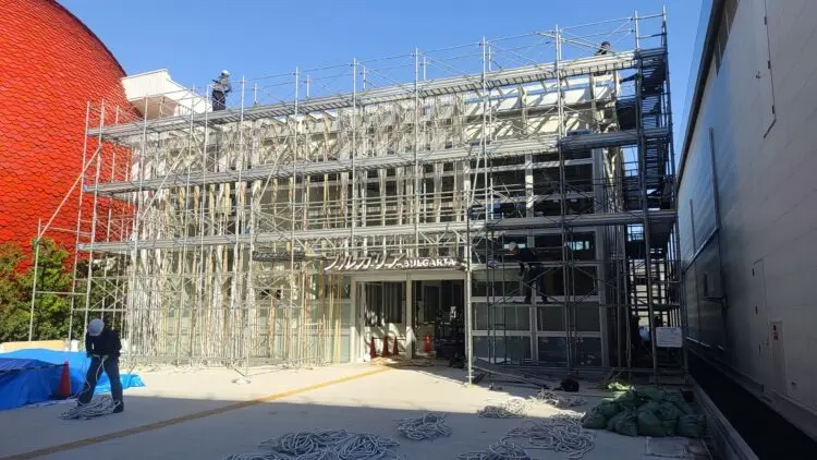 先日、国名の看板を取り外していたブルガリアは既に足場が組まれて、パビリオンに吊るされていたロープが1本ずつ取り外されていた。