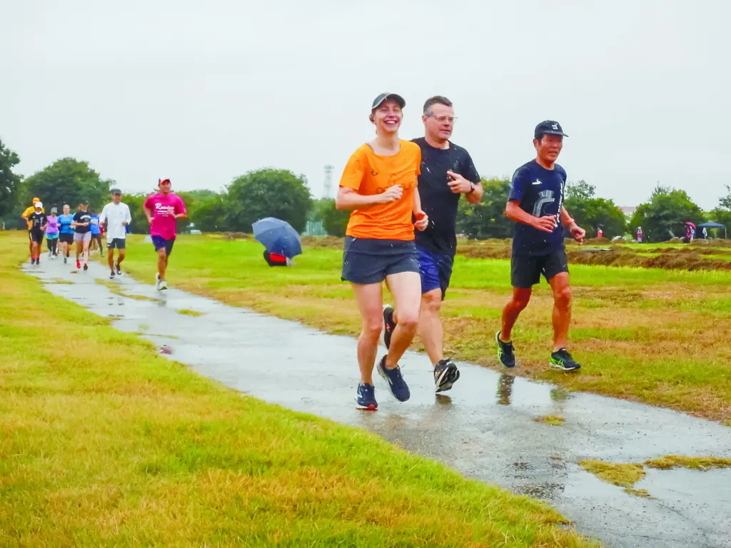 全国的なランニングイベント「パークラン」が10月4日、守口市の淀川河川公園八雲地区で新たに始まった。河川敷に設けられた5㌔のコースでは、外国人旅行客やティラノサウルスの着ぐるみ姿のランナーら47人が参加し、完走を果たした。参加は無料で、今後は毎週土曜の午前8時に開催される。