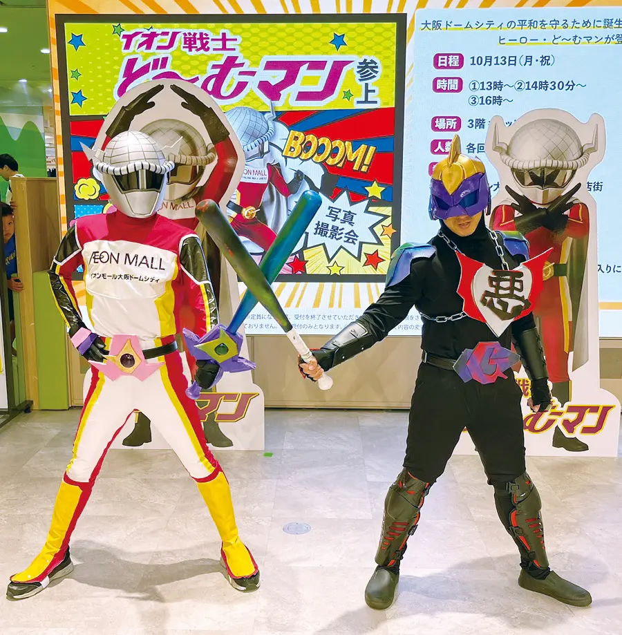 全国のイオンモールの中には、周年記念などで一時的にキャラクターを導入する例もあるが、常設の公式ヒーローとして展開するのは珍しいという。地域に密着したイオンモールの新たな取り組みとして、ど〜むマンの活躍に期待が高まる。