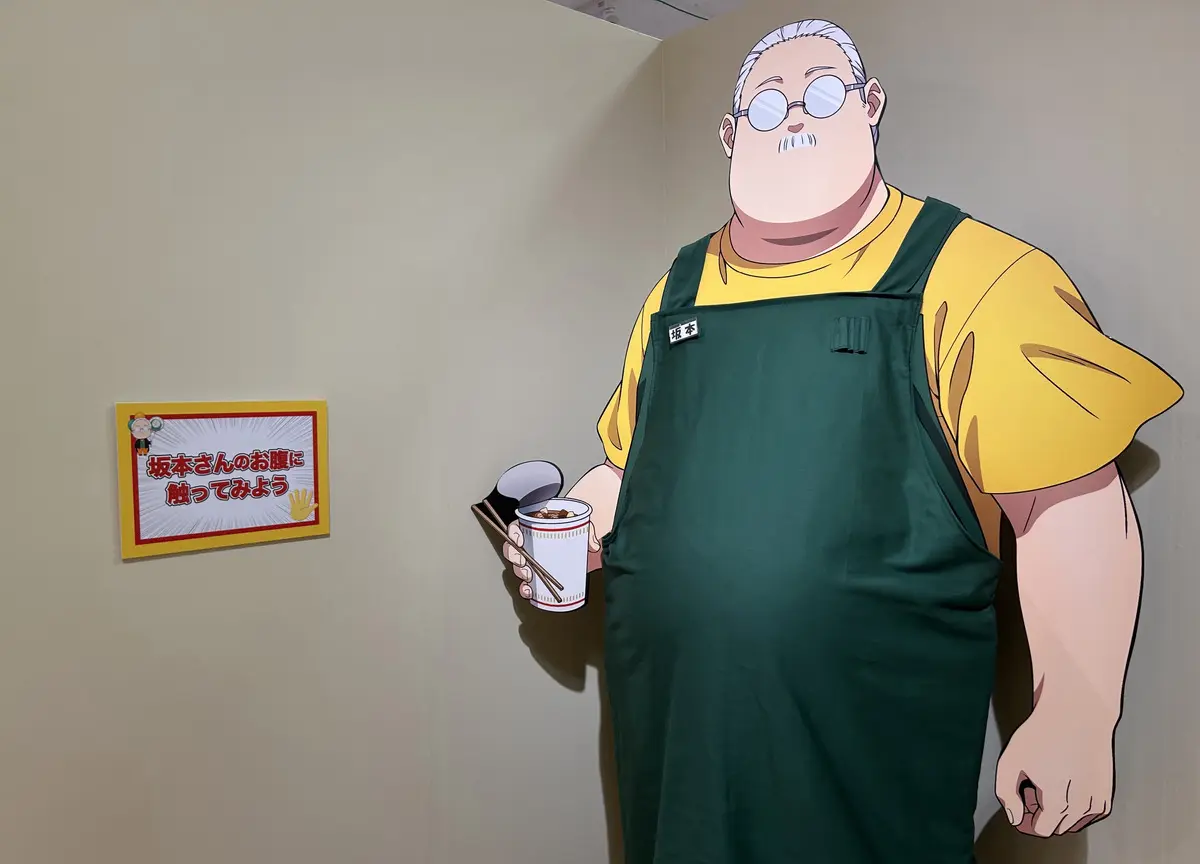 「普通だけど、普通じゃない」のストーリーテーマに沿った展示となっており、主人公・坂本太郎のお腹が触れる等身大パネルや、坂本の職場・坂本商店のレジ部分を忠実に再現した体験型コーナーも豊富。
