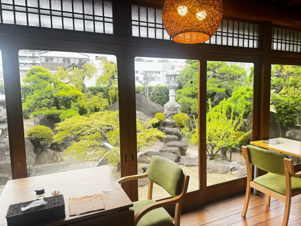 館主は、香川県琴平町で江戸末期創業の老舗「こんぴら温泉つるや旅館」を25年間にわたり経営してきた小寺達也さん。築50年の屋敷を自らの手で〝宿〟として再生した。趣ある門をくぐると、目の前に広がる日本庭園と、それを一望できる28席の和風レストランが出迎える。生駒から運ばれた大岩や枝垂れ紅葉が季節を彩り、この時期は秋のトンボが飛び交う。庭を眺めながらの昼食は格別で、「ガッツリ優勝館御膳ランチ」(1200円)などの人気メニューを求め、連日多くの客が訪れている。