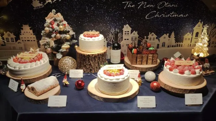 1つのフルーツに絞ってショートケーキを作り上げてきたこれまでとは違い、博多あまおうと静岡県産で糖度14度以上のマスクメロンという2種類のフルーツを共存させた、ホテルニューオータニ最高峰のクリスマスケーキを中心にした贅沢なラインアップで7種類のクリスマスケーキを用意している。