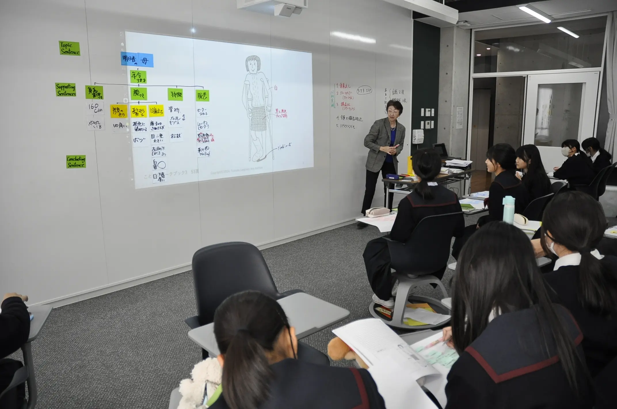 次に2年B組の授業をのぞかせてもらった。人物のイラストを見ながら、言葉で人物の特徴を説明する「人物描写」だ。