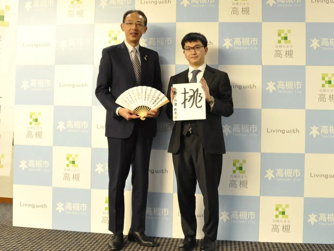 濱田市長は「将棋ファンとして準決勝を心待ちにしています。昨年12月には高槻市芥川町に新しい関西将棋会館が移転しました。本市は『将棋の街』として地域活性化に力を入れています。JTさまが長年にわたり将棋文化を支えてこられたことも心強いです。両棋士には歴史に残る一局を期待しています」と激励した。