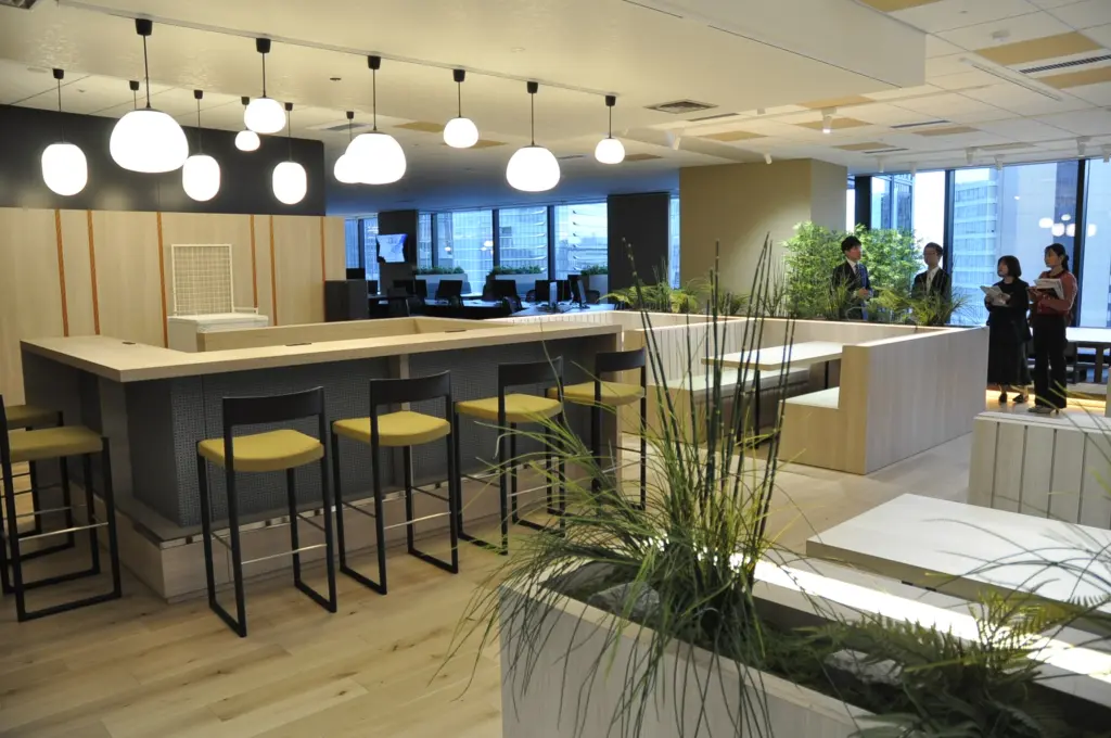 公開されたオフィスツアーでは、来訪者が視認できるフォーマルなエントランスや多目的ミーティングルーム、オープンラウンジなどが紹介された。コミュニケーションスペースは国際色を意識し、各テーマごとに異なる意匠を採用。海外の取引先や研究者を迎え入れる場としての役割も想定されている。