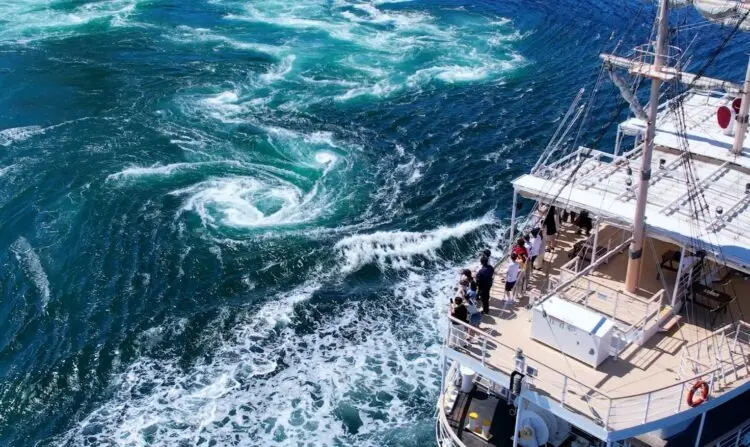 便は午前中から複数隻が出航しているが、夕方の便では、日本の夕陽百選に選ばれた鳴門海峡に沈むサンセットを鑑賞できる。夕陽に染まる海面と渦潮が織り成す幻想的な光景は、この時期ならではの体験だ。運航時間は日によって異なるため、潮見表とあわせてホームページなどで確認を。