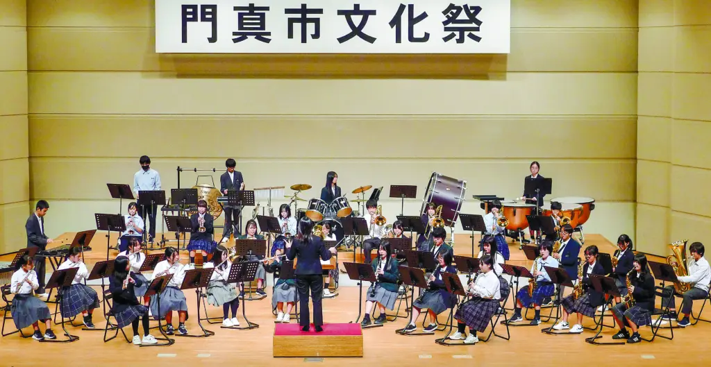 最終日の3日には「市民音楽祭」が行われ、18団体が出演して会場を盛り上げた。終盤には、市立中学校の部活動地域移行に伴い、昨年6月に発足した「門真市立中学校吹奏楽団」が登場。関西フィルハーモニー管弦楽団の楽団員や地域バンドのメンバーの指導を受けた市内中学校の1~3年生45人で構成された生徒らは「私は最強」「ダンスホール」「僕のこと」などを演奏し、息の合ったハーモニーを響かせた。