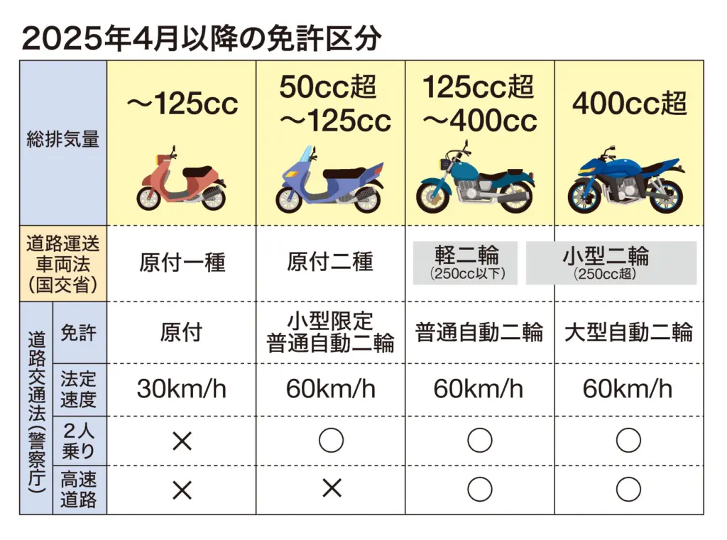 今年4月の道路交通法改正で、エンジンの排気量が50㏄を超えて125㏄以下、かつ最高出力を4.0㌗以下に抑えた二輪車が、新たに「第一種原動機付自転車(原付)」として扱われるようになった。