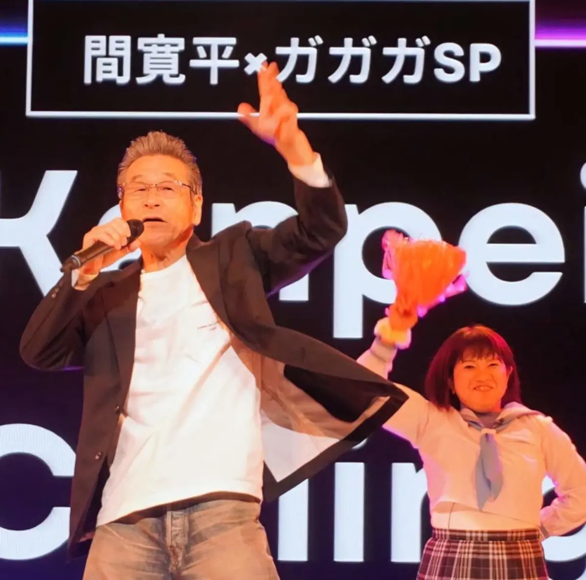 ガガガSP制作のオリジナル新曲を熱唱する寛平GM(中央)
