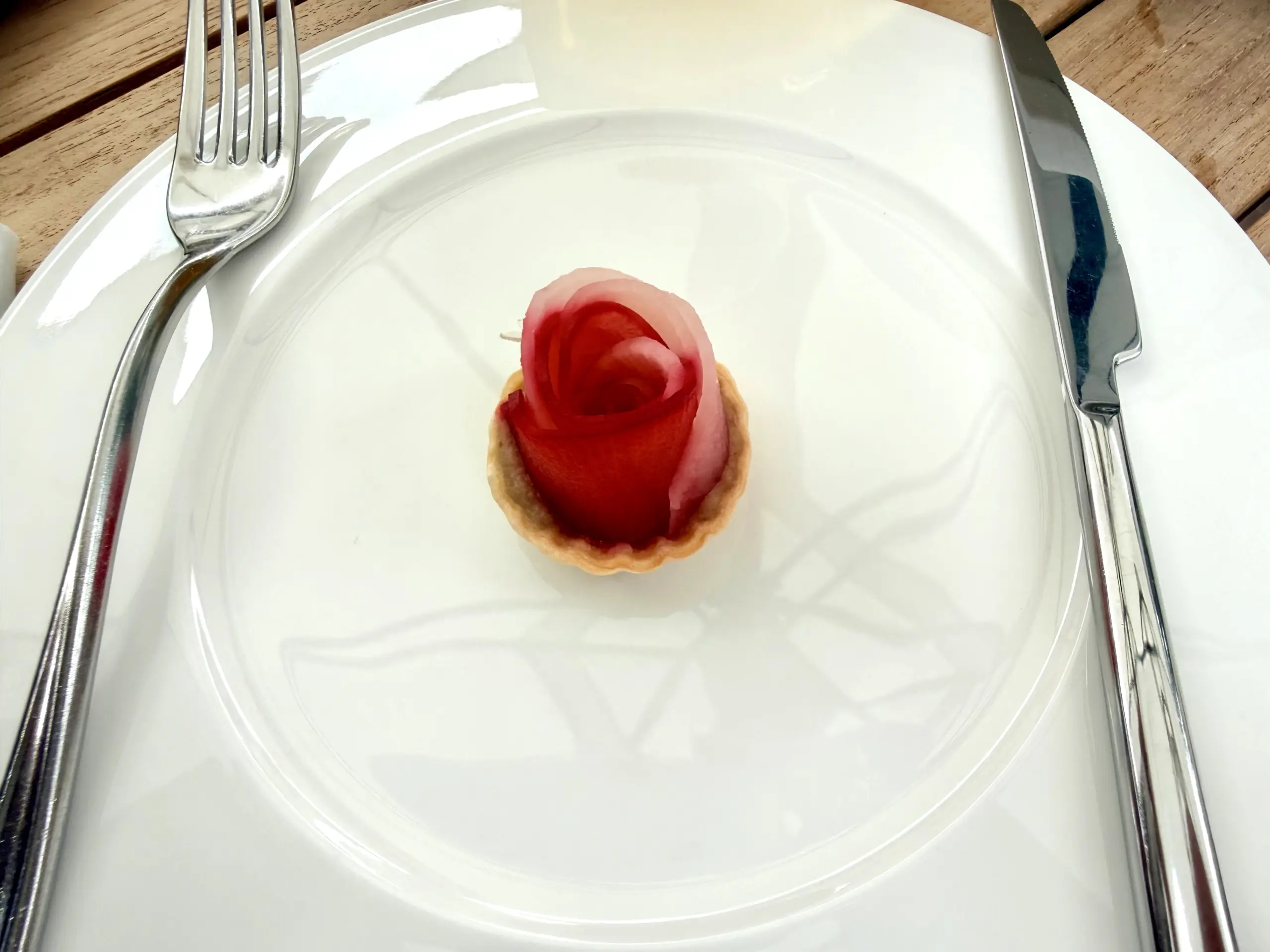 同僚記者からは、「セイボリーは甘さの合間に嬉しい変化を感じた。甘いものだけじゃなく、しょっぱい・酸味のあるセイボリーも充実。例えば、『大根をバラのように仕立てたタルト』は見た目がとてもかわいく、色合いも繊細。しっかり味がついていて、まるで〝甘さの合間の箸休め〟のような存在。スイーツとセイボリーを交互に味わうことで、お腹も心も無理なく満たされるバランスの良さを感じた」と感想を話していた。