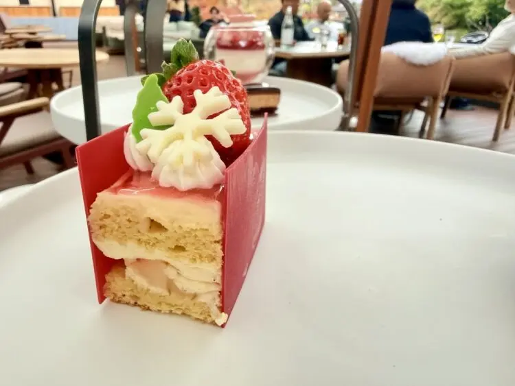 この時期はいちごがテーマのアフタヌーンティーが多く、いちごが添えられていたり、使用されている、という場合が目立つ中、同ホテルのそれは、いちごの存在感が高く、どのスイーツを食べても確実にいちごの味や存在感を感じられた。一つ一つのスイーツにはいちごの味を生かす創意工夫が凝らされていて、ほかとは一線を画す仕上がりになっている。