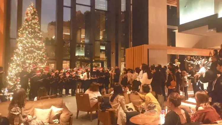 また、この日はメインダイニングエリアに当たるレストラン&バー「エンバ・キョウト・グリル」の一角でクリスマスツリーの点灯式があり、地元のインターナショナルスクールの学生さんによる合唱でその瞬間を楽しめる時間も。