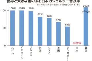 地下シェルターの普及率が0.02%にとどまる日本は、専門家から「シェルター後進国」とも指摘されてきた。国の基準づくりがようやく動き出した一方で、「避難先そのもの」だけでなく、住民が避難所へ移動するまでの〝守られていない時間〟をどう埋めるかも新たな課題として浮上している。