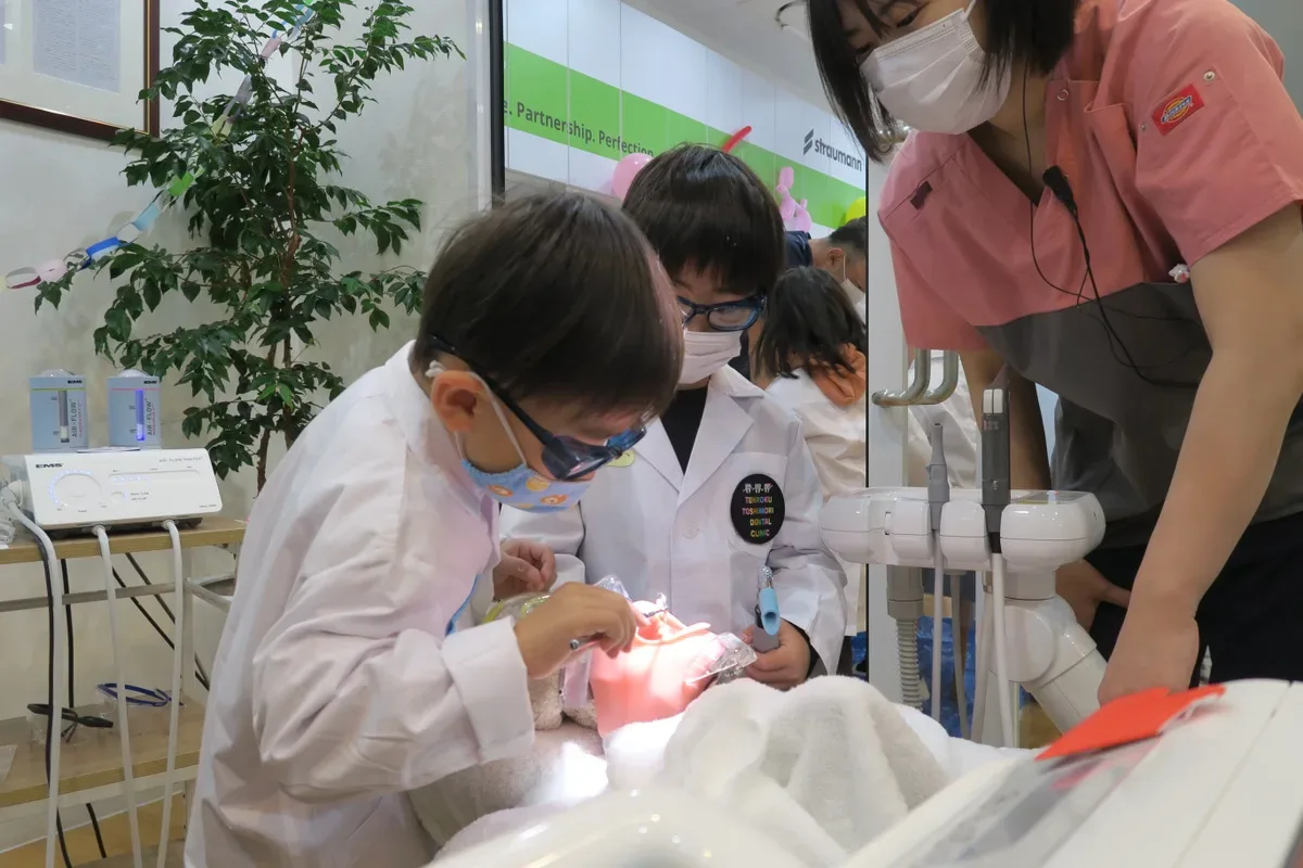 休診日には職業体験を開催しており、そこでは子どもたちに歯科医師が日頃行っている治療を同じ器具や器械を使って行う。治療する側の立場を経験することで、自分の歯並びや虫歯などへ意識が向くようになり、自己管理ができるようになるという。いつも歯医者さんに行くと泣いていた子どもも笑顔で来れるようになることもしばしば。筆者も子どもの頃は走って逃げ回っていたので、もっと早く出会いたかったと心から思った。