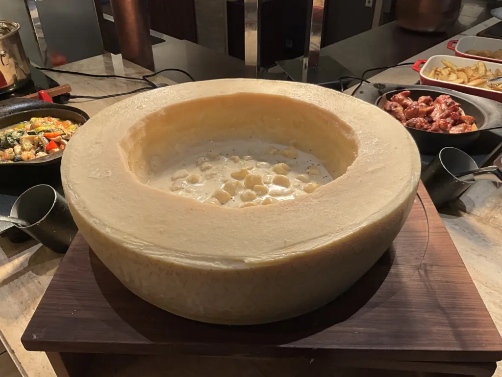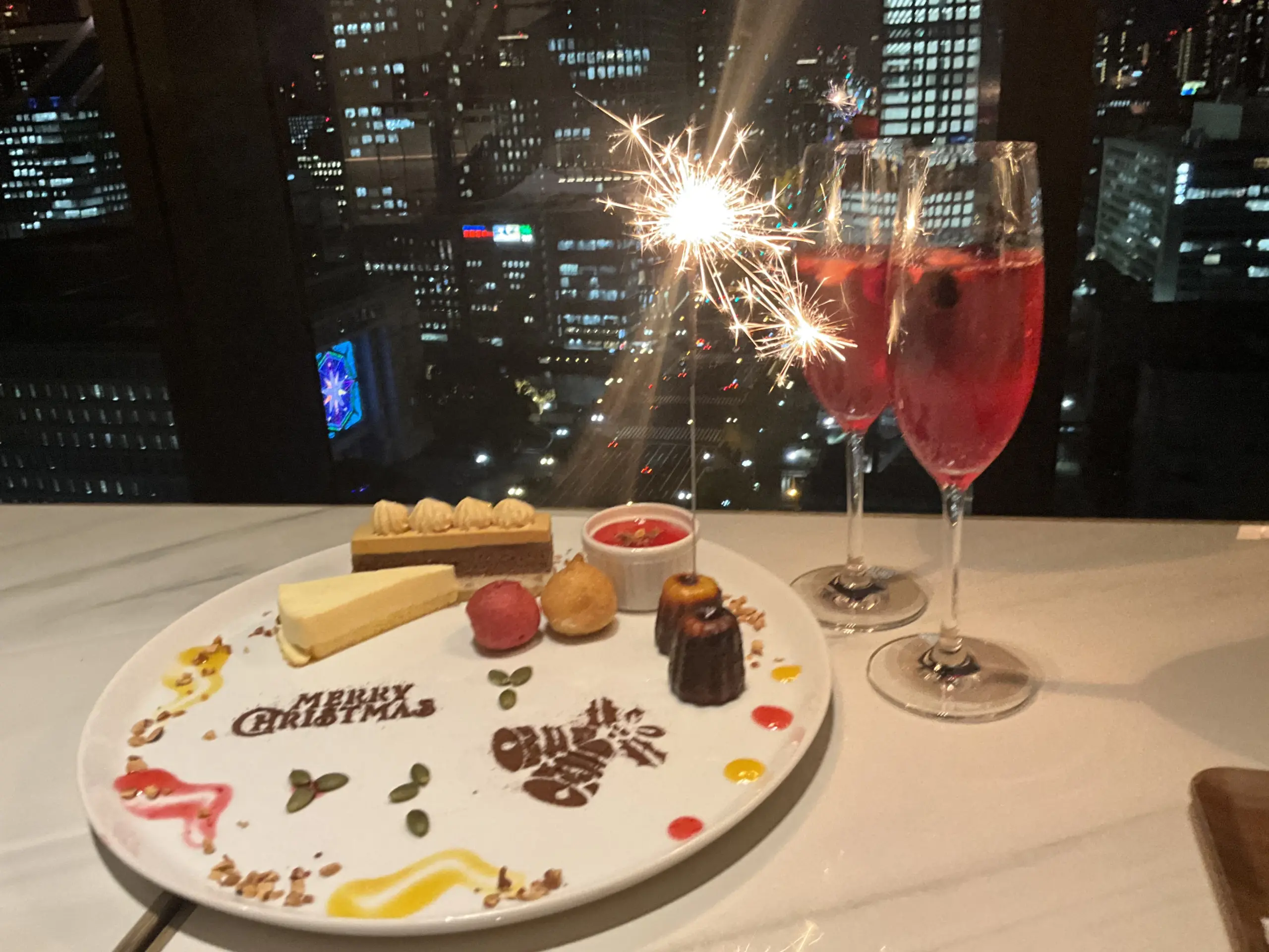 記者のおすすめは、ビュッフェに加えて、ボジュレヌーボーやスパークリングなどのこだわりワインを含めた約25種類のプレミアム飲み放題がついた「天空のアニバーサリープラン」。12月1から25日の期間限定でクリスマスメッセージ付きプレート(1組に付き1プレート)も登場する。