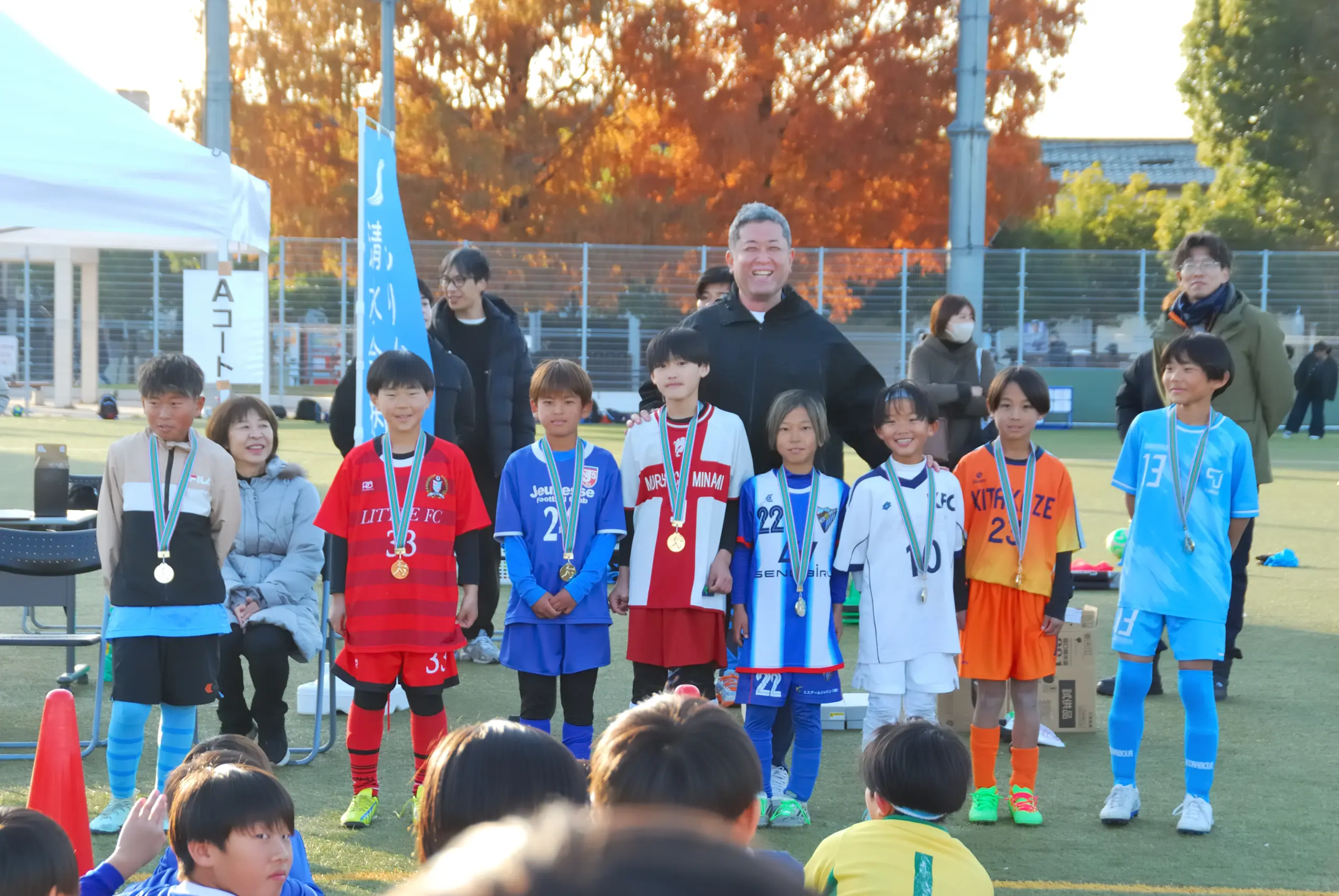 試合後の表彰式では、優勝・準優勝のほか、下位部門1位、優秀選手、得点王、MVPを表彰。優勝・準優勝チームにはカップと表彰状、優秀選手8人にはメダルが贈られた。得点王には守口市長賞、MVPには記念ボールとFCティアモ枚方のサイン入りユニフォームが手渡され、選手たちの笑顔がはじけた。