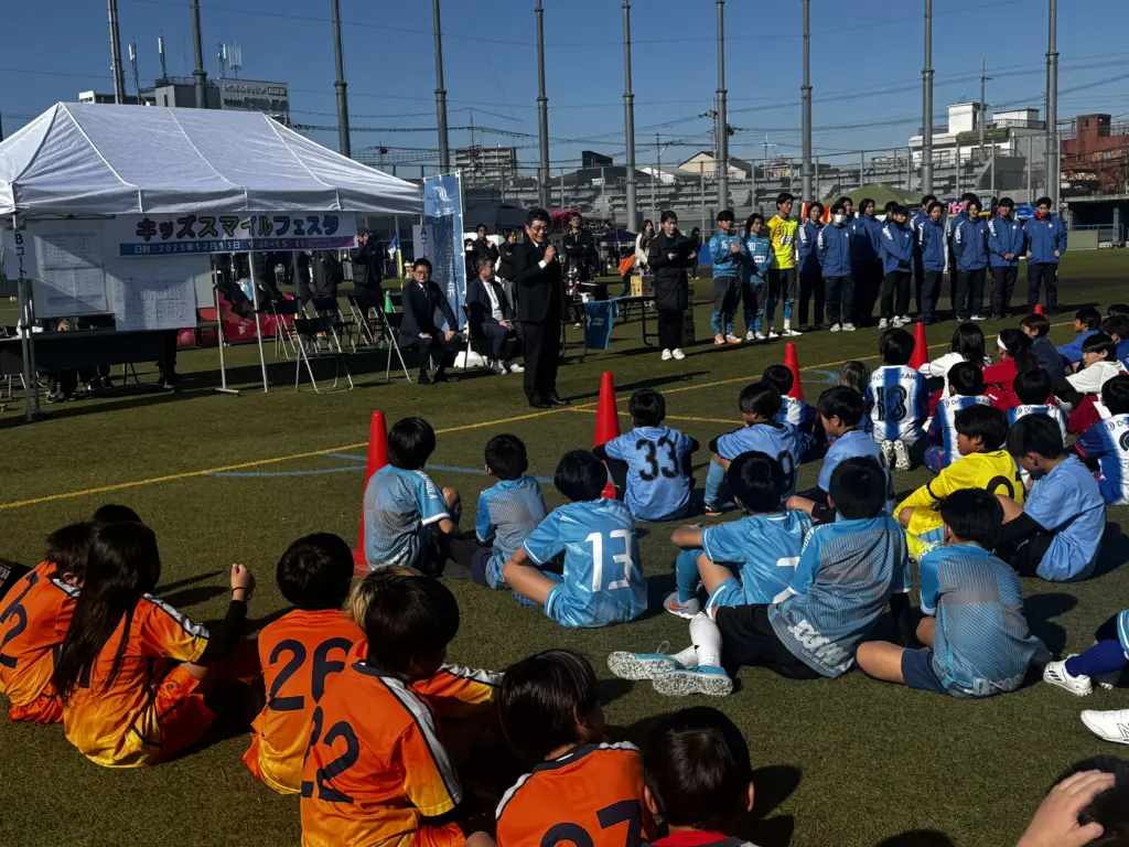 同大会は、地域への感謝と貢献を目的に企画され、スポンサー契約を結ぶサッカーチーム「FCティアモ枚方」の協力のほか、守口市、守口市サッカー連盟の後援を受けて実現。運営には大阪産業大学男子バスケットボール部、大阪信愛学院大学男子サッカー部、大阪国際高校の学生が参加し、選手誘導や運営補助などを担い、子どもたちを温かく支えた。