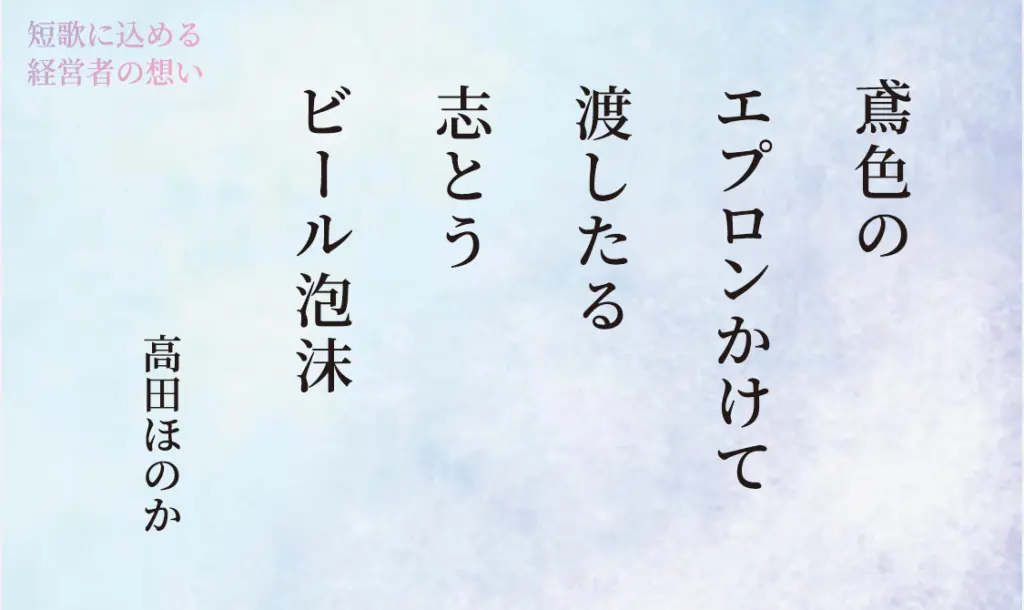 鳶色のエプロンかけて渡したる志とうビール泡沫