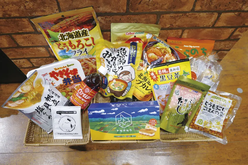 北海道のアンテナショップ「北海道うまいもの館」は、新千歳空港のJAL PLAZAで人気の「トカチカラ とろもこサンド」をはじめ、 約7,200円相当の厳選商品14点を詰め合わせ、愛らしいシマエナガのオリジナルトートバッグ付き。さらに、 店内で使える550円以内のデザートと交換できるサービス券1枚も入る。店内には北海道の物産を1,000アイテム以上そろえ、牧場ミルクを使った濃厚ソフトクリームも好評。買い物を通して北海道気分を楽しめる。